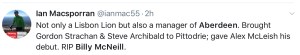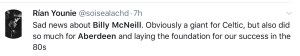 Tributes to Billy McNeill from Aberdeen fans on Twitter